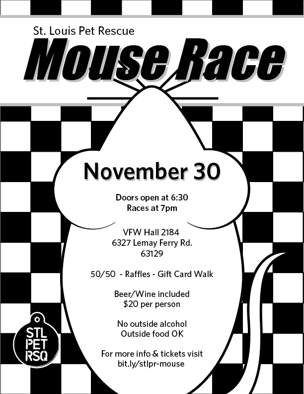 St. Louis Pet Rescue will have our first mouse race at the end of November.